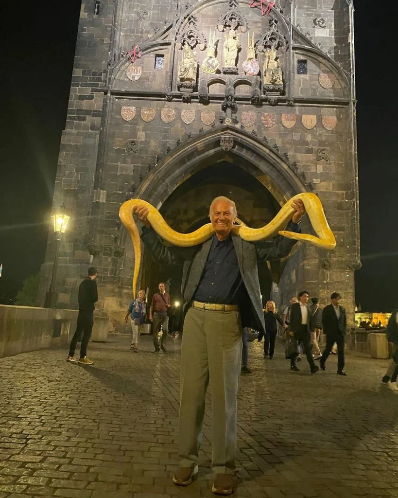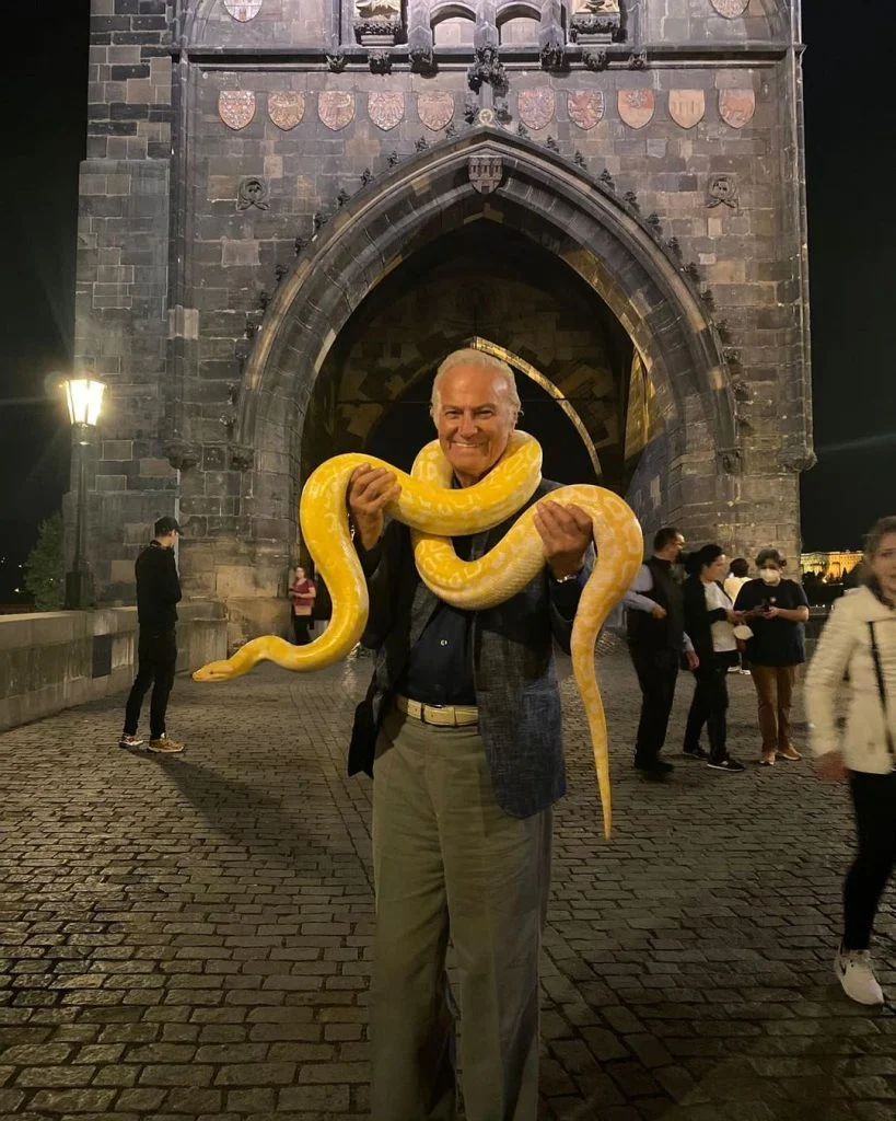 82 yaşındaki Ediz Hun, Prag seyahatinde paylaştığı yılanlı pozlarla dikkat çekti. Sarı bir piton yılanını boynuna asan oyuncu altına şu mesajı yazdı: “Gayet iyiyim… :) Prag’dan Selamlar… Golden Python… Tok olduğu zaman agresif değildir. Hiçbir riski yok.”