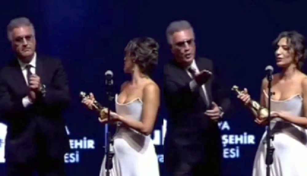 Antalya Altın Portakal Film Festivali’nde, ‘En İyi Kadın Oyuncu’ ödülünü alan Nihal Yalçın’ın konuşmasını ödül vererek sabote eden Tamer Karadağlı’nın tavrı tepki topladı.