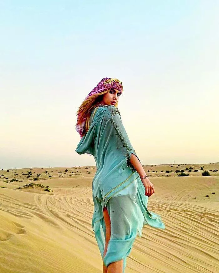Havva Öztel’in çölde verdiği birbirinden çarpıcı pozlar dikkat çekti.