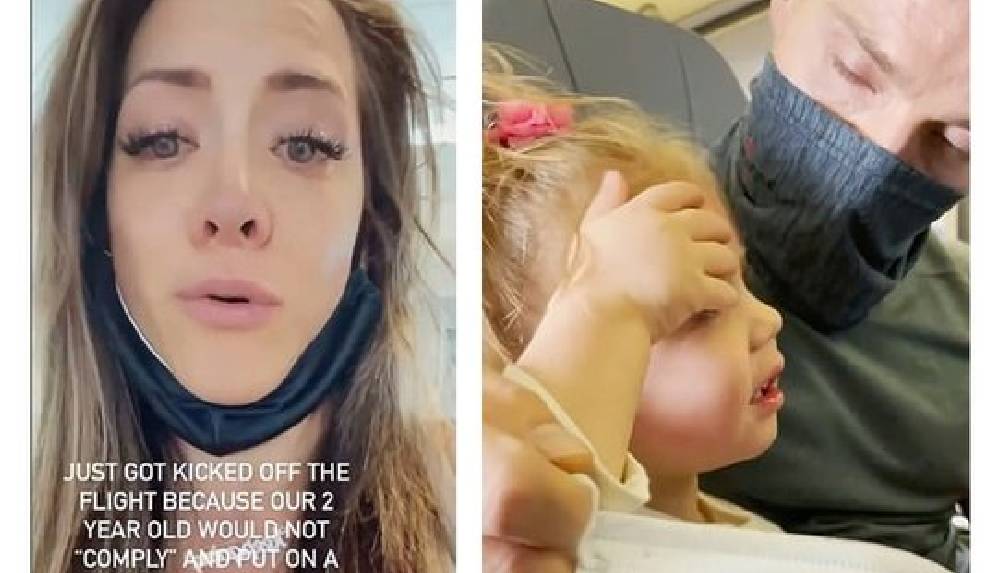 Genç bir anne, iki yaşındaki kızları maske takmayı reddettiği için kocasıyla birlikte United Airlines uçuşundan atıldı. Eliz Orban, Cuma günü Instagram’da paylaştığı bir videoda, uçaktan indikten sonra kocası ve kızı Edeline ile birlikte havaalanında gözyaşları içinde görüldü.