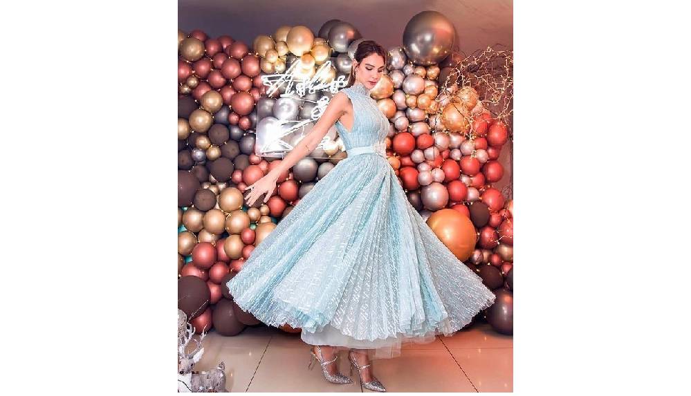 Aslışah Alkoçlar mavi nişan elbisesi ile duru güzelliğiyle göz kamaştırdı.