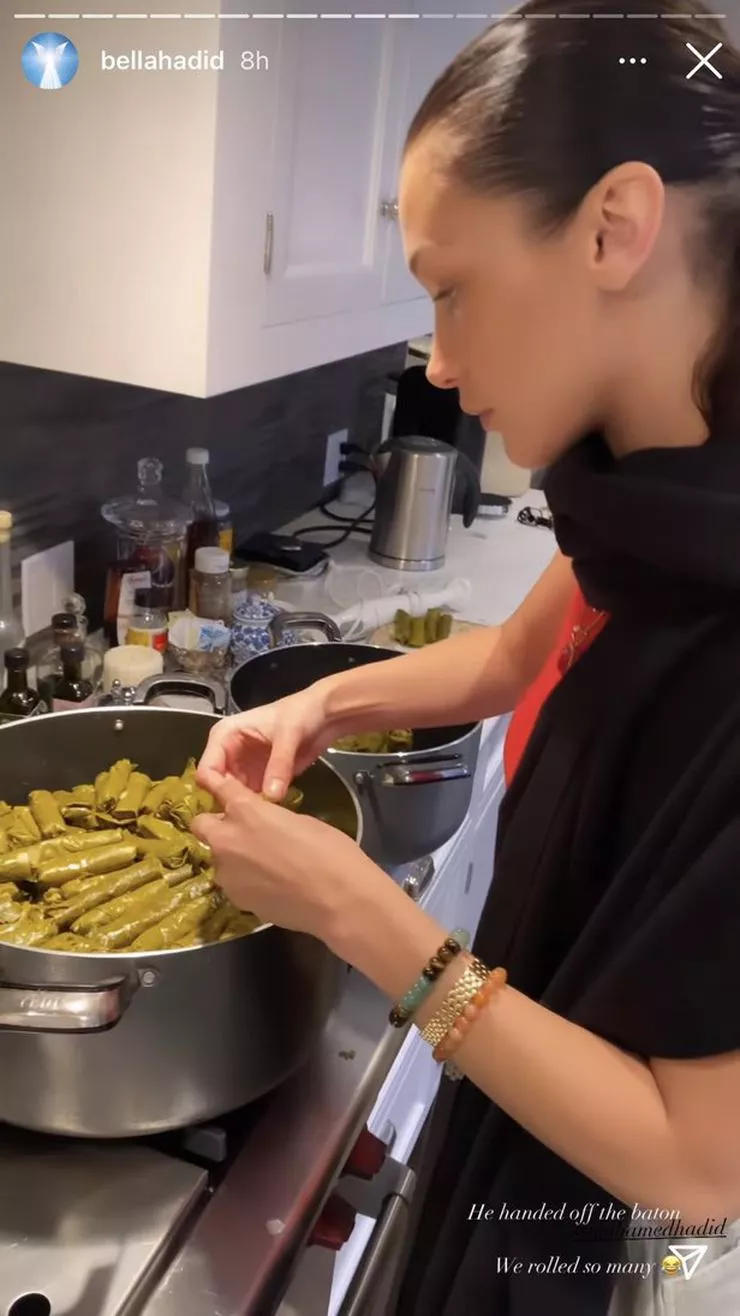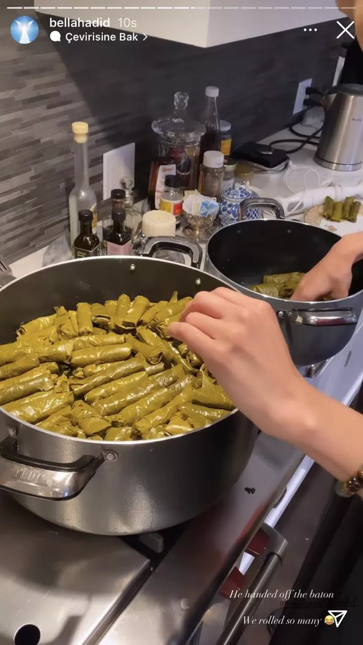 Önceki gün depresyon ve akıl sağlığı ile ilgili açıklama ve fotoğraflarıyla gündem olan 25 yaşındaki Hadid, mutfağa girdi ve sarma sarmaya başladı.
