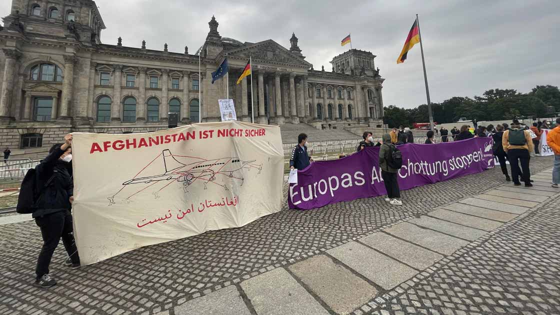 Gösteride yapılan konuşmalarda Afganistan’da hayatları tehlikede olanların ülkelerinde bürokrasi uygulanmadan güvenli şekilde tahliye edilmesi ve Almanya’da bulunan Afgan sığınmacıların sınır dışı edilmemesi talep edildi.