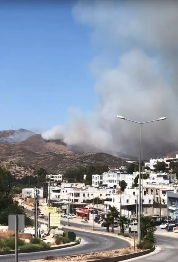 Başta turistik mahalle Gümüşlük olmak üzere gökyüzünü kaplayan dumanlar ise ilçe genelinden görülüyor.