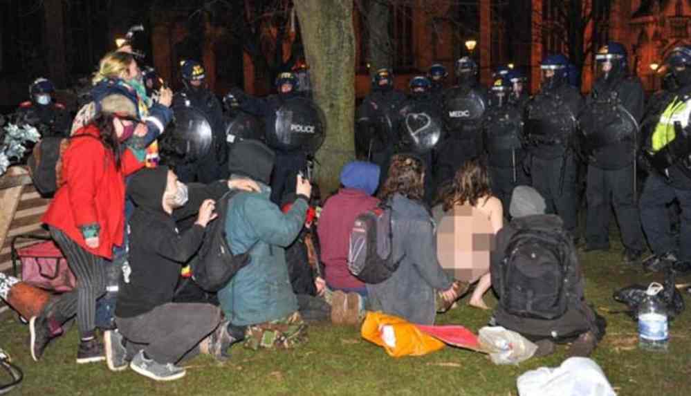 Bristol’daki gösterilerde protestocu kadın çırılçıplak soyundu! Polisler neye uğradığını şaşırdı…