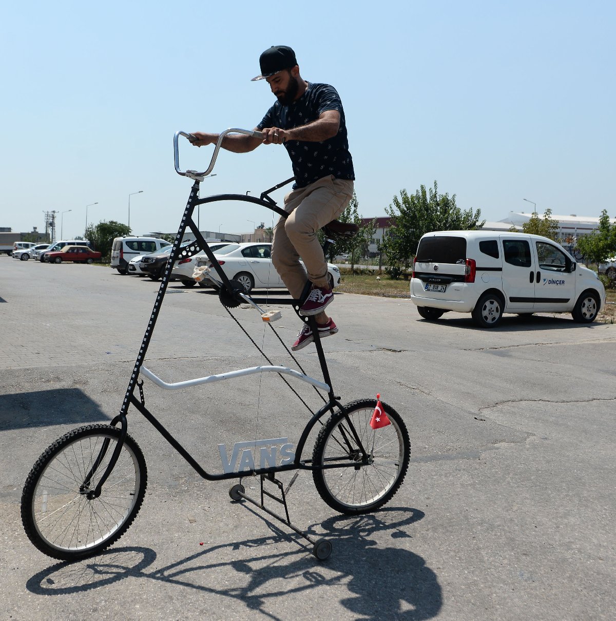 Demir ayrıca boyu 3 metreye ulaşan bisikletine rahat inip, binebilmek için arka kısmına, merdiven görevini yapabilen küçük demirler ekledi.