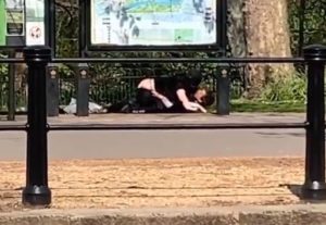 İngiltere’nin başkenti Londra’daki Buckingham Sarayı’nın karşısındaki yeşil alanda önceki gün çekilen görüntülerde, bir çift herkesin ortasında sevişirken görülüyor. Etraftaki kalabalığa aldırmayan çift, polislerin uyarısından sonra toparlandı.