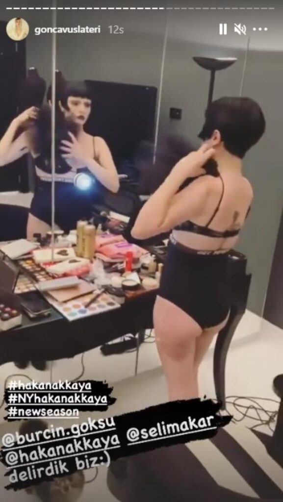 Instagram’da 1 milyon takipçisi bulunan Gonca Vuslateri, kulisteki hazırlık aşamasını anbean takipçileriyle paylaştı. Oyuncu, iç çamaşırlı olduğu video ise “Delirdik biz” notunu ekledi.