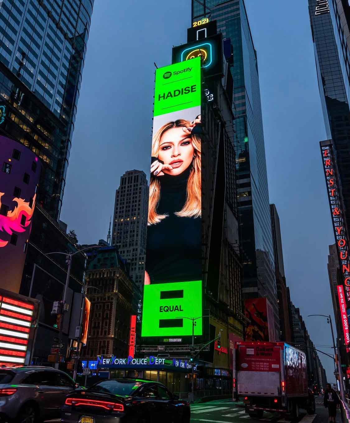 Ünlü şarkıcı Hadise, son Instagram paylaşımıyla adından söz ettirdi. ABD’nin New York şehrinde bulunan ünlü Times Meydanı’ndaki bir binada yer alan fotoğrafını yayınlayan Hadise, dikkat çekici bir mesaj verdi.