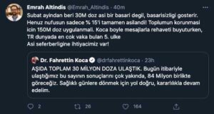 “Şubat ayından beri 30 milyon doz aşı bir başarı degil, başarısızlığı gösterir. Henüz nüfusun sadece yüzde 15’i tamamen aşılandı! Toplumun korunması için 150 milyon doz uygulanmalı. Koca böyle mesajlarla rehaveti büyütürken, Türkiye dünyada en çok vaka bulan 5. ülke aşı seferberliğine ihtiyacımız var!”