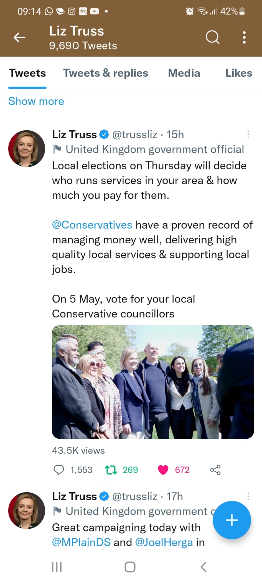 İngiltere Dışişleri Bakanı Liz Truss, partisinin adaylarına verdiği desteği sosyal medya hesabından da paylaştı
