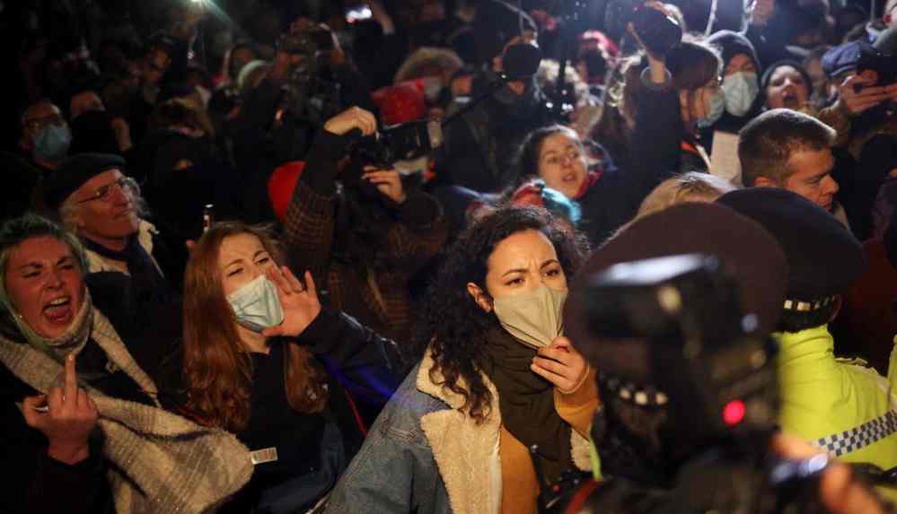 Polisler, insanları Covid güvenliği nedeniyle Common’u terk etmeleri konusunda uyardı ve bazı göstericiler gözaltına alınınca olaylar çığrından çıktı. Polise hakaret eden göstericiler ile polis arasında arbedeler yaşandı.