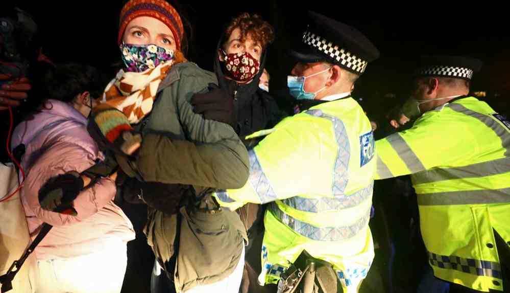 Sarah Everard’ın en son görüldüğü Clapham Common’da toplanan kalabalığa polis müdahale etti ve anma için gelenlere kelepçe takıp gözaltına aldı.