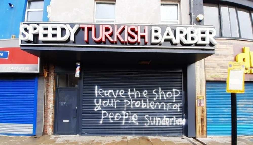 İngiltere'nin Sunderland kentinde yaşayan Türklere ait iş yerlerine ırkçı tehdit şoku yaşanıyor... Yerel basına konuşan yetkililer özellikle şehirdeki Türk berberlerin dükkanlarının saldırıya uğradığını açıkladı.