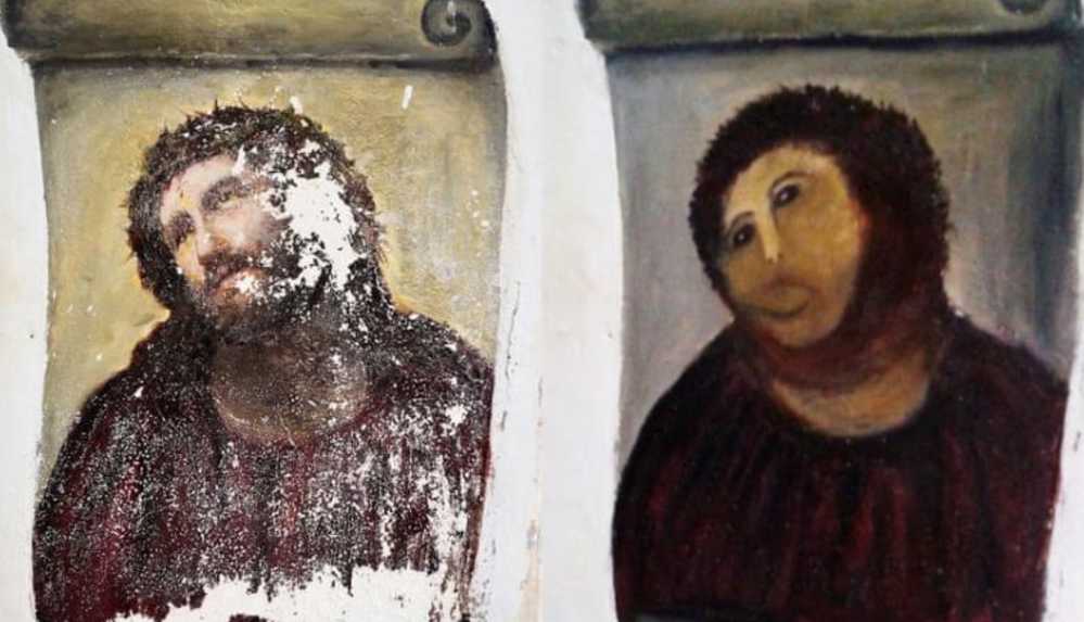 Bunlardan ilki ve en ünlüsü Borja’daki bir kilisenin duvarındaki asırlık İsa çizimine yapılan müdahale. Kilise cemaatinden 80 yaşlarında birisi dökülen boyayı düzeltmeye çalışmış, daha sonra çizim “Maymun Mesih” ve “Patates İsa” isimleriyle ünlenmiş ve çizimin bulunduğu kilise, turist akınına uğramıştı.