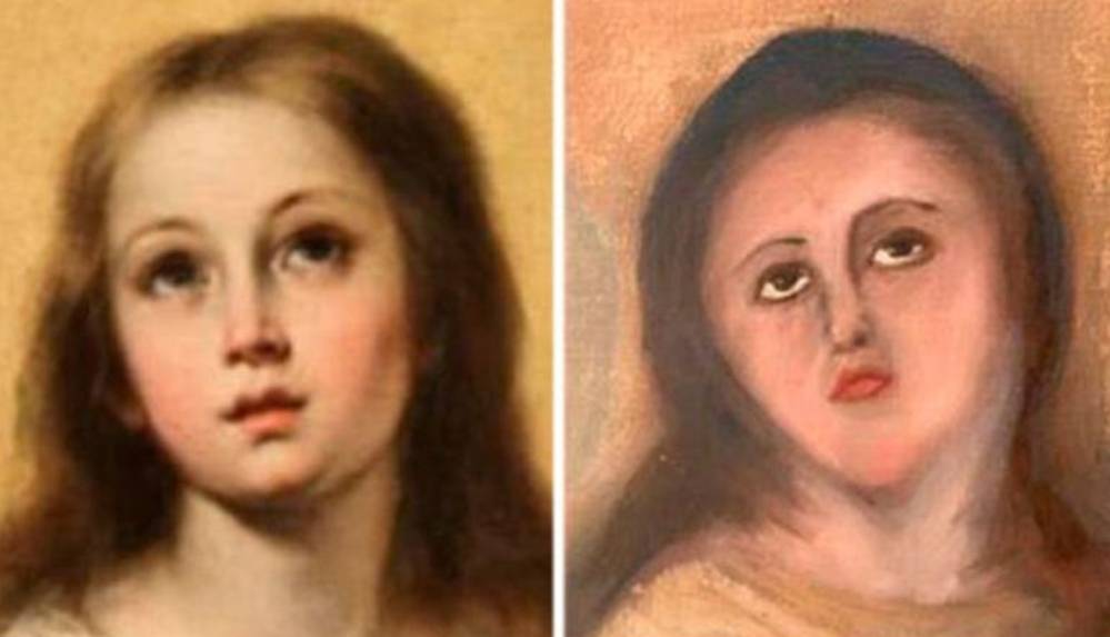 Hazirandaysa 17. yüzyıl sanatçısı Bartolome Esteban Murillo’nun Immaculate Conception isimli tablosunun bir kopyası bin 200 euro (yaklaşık 11 bin TL) karşılığında düzeltilmesi için mobilya restoratörüne verilmiş, sonuç felaket olmuştu.