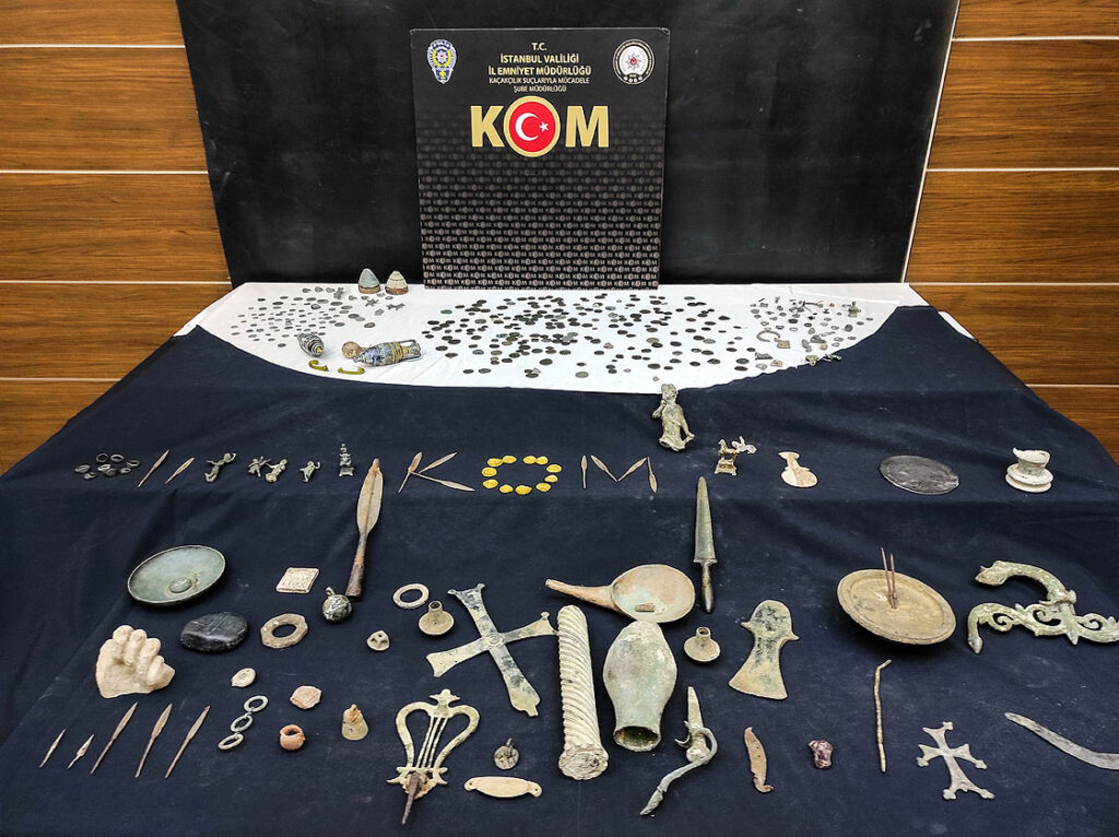 Ele geçirilen 415 tarihi eser niteliğinde olduğu değerlendirilen objenin, İstanbul Arkeoloji Müzeleri Müdürlüğüne teslim edileceği öğrenildi.