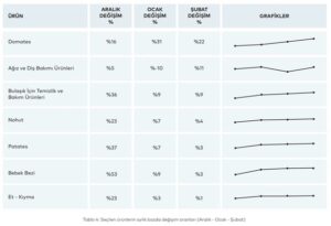 Araştırma raporunda seçilen ürünlerin bazılarında son üç ayda meydana gelen maliyet artışı şöyle:
