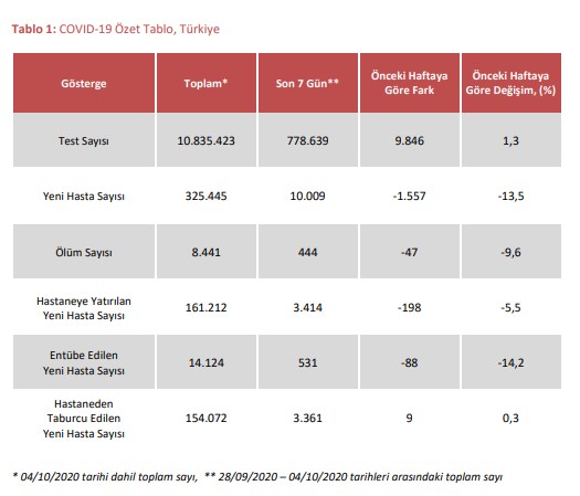 Sağlık Bakanlığı, yeni tip koronaavirüs (Covid-19) salgınına ilişkin Covid-19 Haftalık Durum Raporu’nu yayımladı.