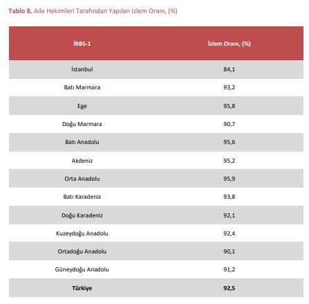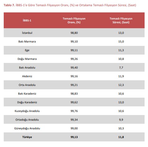 Temaslı filyasyon oranının en yüksek olduğu bölge Kuzeydoğu Anadolu Bölgesi (%99,76) olup ortalama temaslı filyasyon süresi 10,6 saattir. Türkiye genelinde ise temaslı filyasyon oranı %99,13 ve ortalama temaslı filyasyon süresi 12 saat civarındadır.