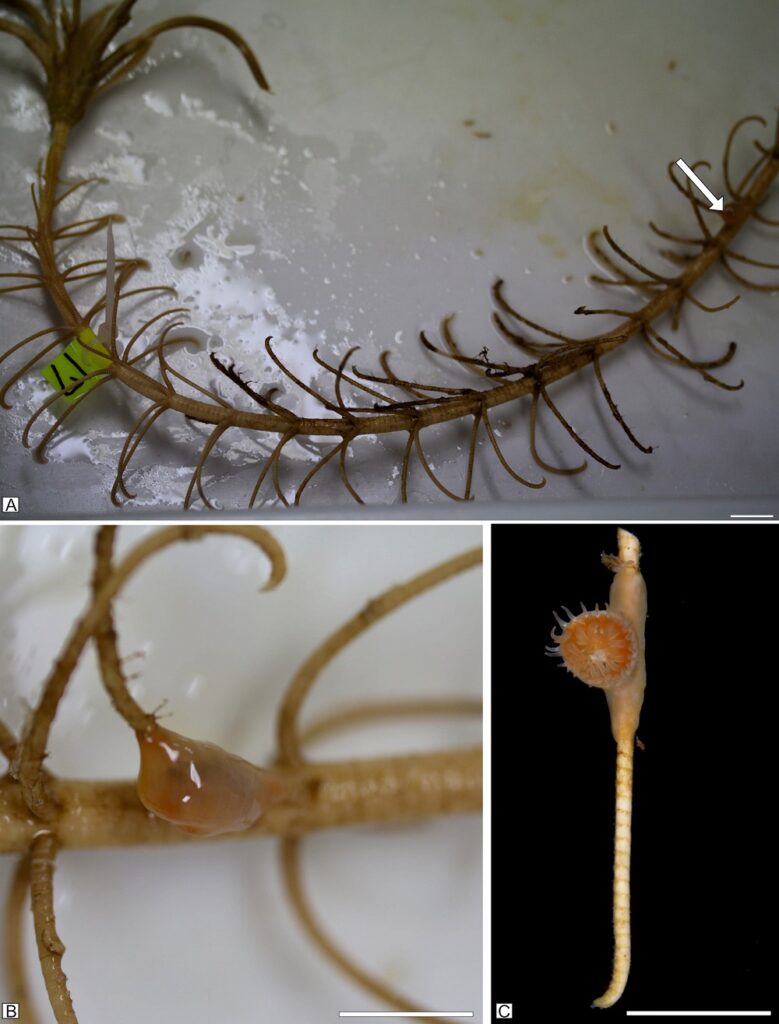 Bilim insanları, “Bu örnekler bir krinoid (konakçı) ve bir heksakoral (epibiont), yakın zamanda gerçekleşen bir sin vivo ilişkisinin ilk ayrıntılı kayıtlarını ve incelemelerini teslim ediyor” şeklinde konuştu.