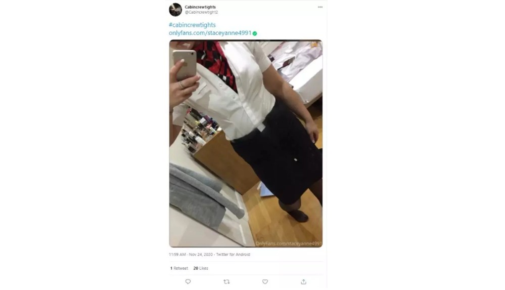 British Airways çalışanı iki üyenin de OnlyFans hesabına bağlanan benzer hesapları olduğu tespit edildi. Cabin Crew Goddess (Kabin Ekibi Tanrıçası) adıyla açılan hesapta üniformalı olduğu anlaşılan görüntüler var.