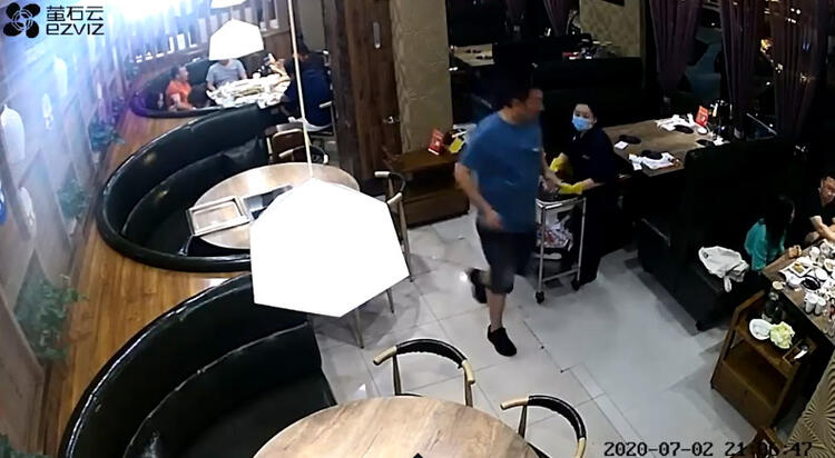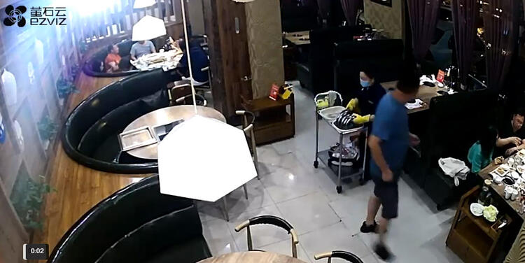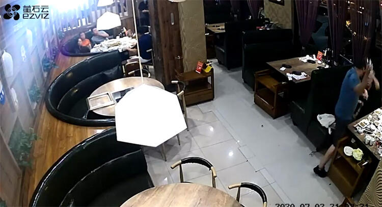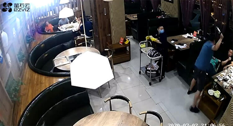 Restoranda karısının iki erkekle yemek yediğini öğrenen öfkeli koca, 2 Temmuz tarihinde Çin’in Hebei eyaletine bağlı Boading kentindeki mekanı bastı.