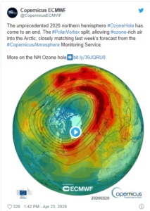 Avrupa Birliği’ne bağlı Kopernik Atmosfer Gözlem Servisi yaptığı duyuruda, “23 Mart itibariyle yapılan incelemelerde Kuzey Kutbu’nda ozon tabakası üzerinde gözlemlenen en büyük delik kapandı” denildi.