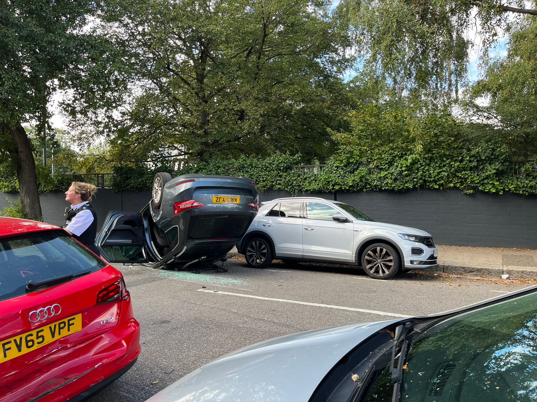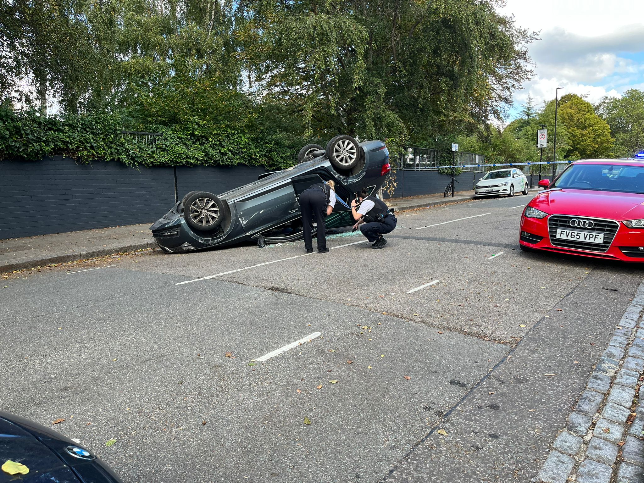 Olay yerine gelen polis ekiplerinin verdiği bilgiye göre kimliği belirsiz kişi yada kişiler Tufnell Park yakınlarında Oakford Road caddesinde çaldıkları otomobil ile kaza yaptı. Bölgede bulunan bir ilkokul önünde takla atan araçtaki kişi yada kişiler çalıntı aracı olay yerinde bırakarak yaya olarak kaçtı.