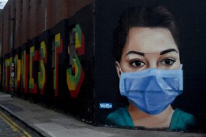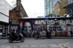 İngiltere’nin başkenti Londra’da Coronavirüs (Covid-19) salgını nedeniyle sakin günler geçiren Brick Lane bölgesindeki duvarlara sağlık çalışanlarına destek amacıyla Coronavirüs ile ilgili grafitiler çizildi.