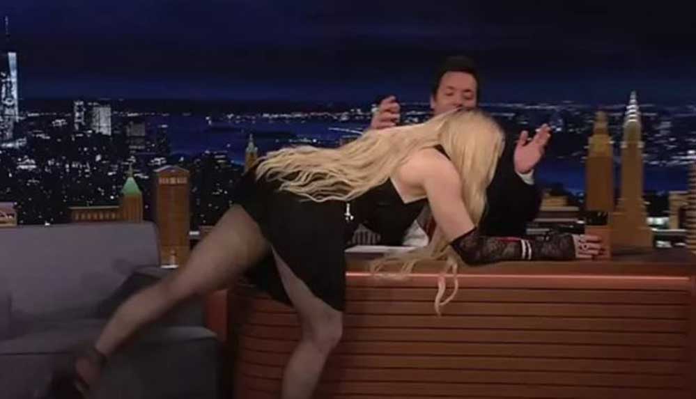 Ünlü şarkıcı programın ilerleyen dakikalarında beklenmeyen bir hamlede bulundu. Madonna bir anda masanın üstüne atlayarak eteğini kaldırdı. Madonna, “Hayat sadece kediciklerle röportaj yapmaktan ibaret değil. Bir yetişkinle konuşmak istemiyor musun? Biraz yetişkin sohbeti yapalım” diyerek masanın üzerine yattı.