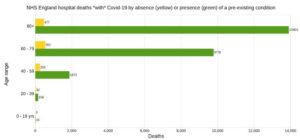 İngiltere Ulusal Sağlık Servisi NHS tarafından yayınlanan istatistiklere göre, İngiltere ve Galler’de kaydedilen “COVID ölümleri”nin % 95’inin potansiyel olarak ciddi hastalıkları vardı.