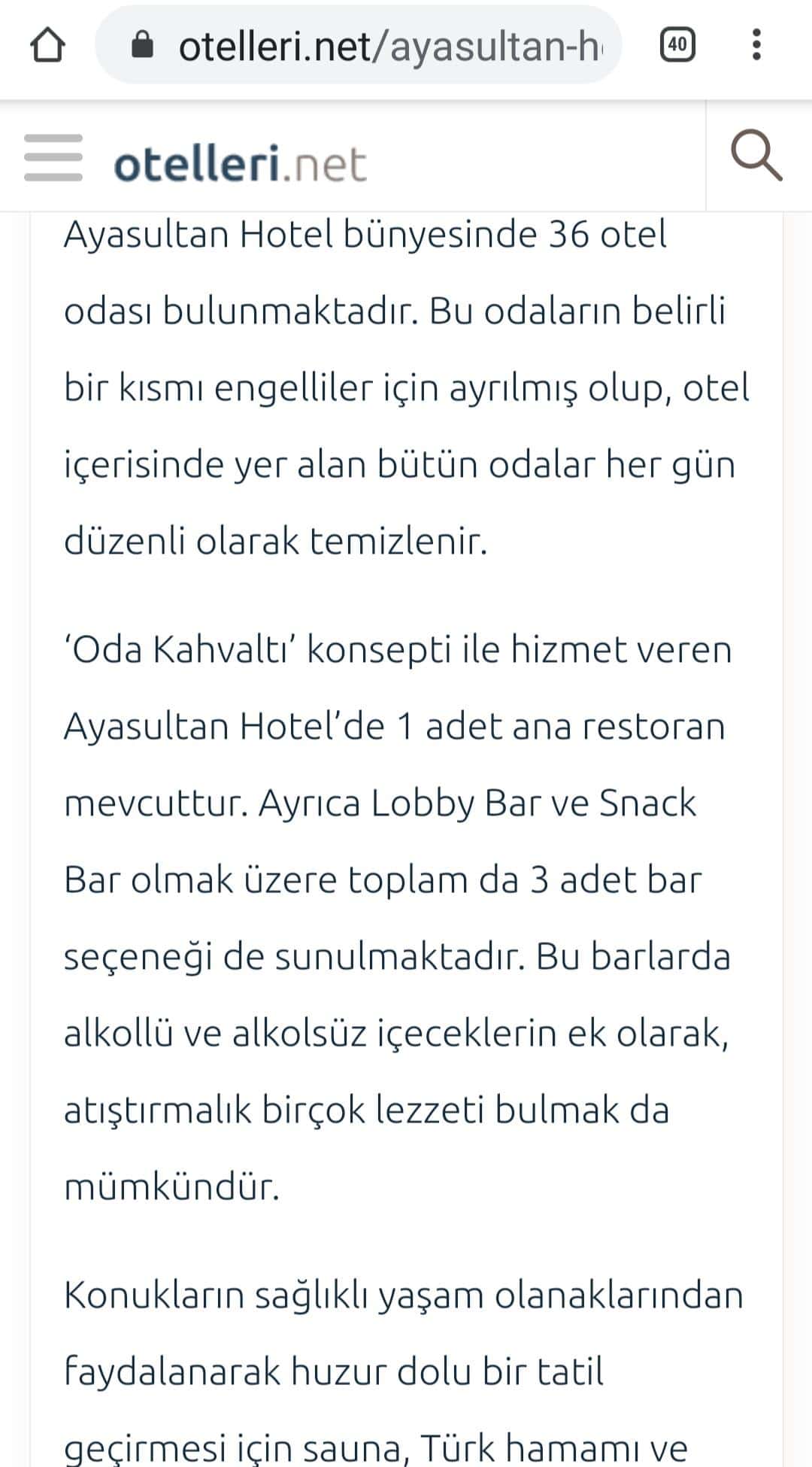 Sosyal medyada gündeme gelmeden önce tanıtım yazısında “Oda kahvaltı konsepti ile hizmet veren Ayasultan Hotel’de 1 adet ana restoran mevcuttur. Ayrıca lobby bar ve snack bar olmak üzere toplam da 3 adet bar seçeneği de sunulmaktadır. Bu barlarda alkollü ve alkolsüz içeceklerin ek olarak, atıştırmalık birçok lezzeti bulmak da mümkündür” ifadeleri kullanılırken, sosyal medya paylaşımlarının ardından tanıtım yazısındaki “alkollü içecek” kaldırıldı.