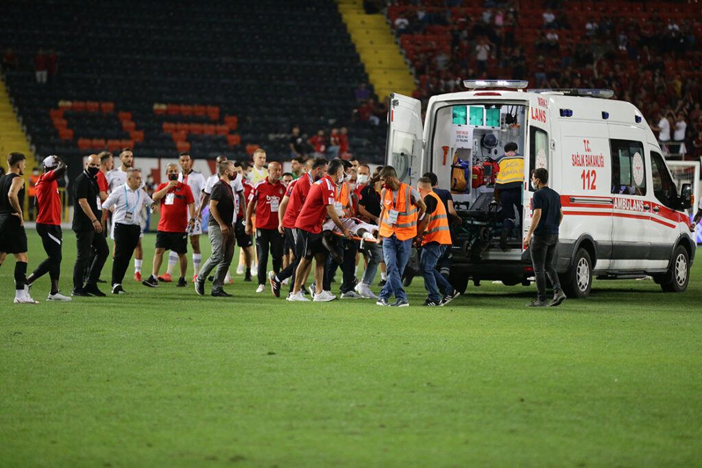 Mücadelenin 70. dakikasında 31 yaşındaki oyuncu topsuz alanda yere yığıldı. N’Sakala’ya ilk müdahaleye Necip Uysal gitti. Devamında sağlık ekipleri sahaya girdi ve Fabrice N’Sakala ambulansla hastaneye kaldırıldı.
