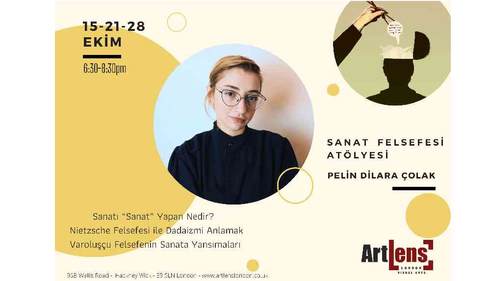 Yeni dönemin ilk etkinliği şu an Londra’da bulunan ve Türkiye’den herkesin tanıdığı 2018 yılından beri Youtube’da “Dilozof” kanalında felsefe, kültür, sanata dair içerikler üreten ayrıca “Herkese Bilim Teknoloji Dergisi” ve “Aposto” köşe yazarı doktorant Pelin Dilara Çolak ile üç oturumluk Felsefe atölyesi ile başlayacak. Sanatı “Sanat” Yapan Nedir? – Nietzsche Felsefesi ile Dadaizmi Anlamak- Varoluşçu Felsefenin Sanata Yansımaları başlıklarıyla Sanat Felsefesi Atölyesi 15 -21-28 Ekim tarihlerinde sorgulamayı seven ve sanat konuşmak isteyen herkese açık.