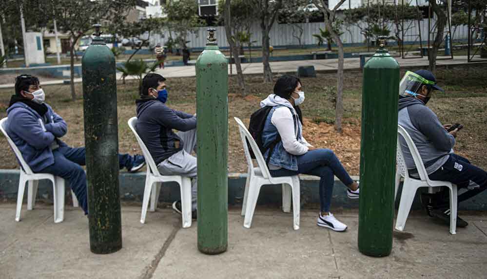 Peru Belediyeler Birliği (AMPE) tarafından başlatılan girişim büyük ilgi çekerken, seyyar aracın önünce sosyal mesafeye dikkat ederek sıraya giren halk, oksijen tüplerini sırtlanıp evlerinin yolunu tutuyor.