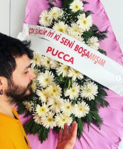 Pucca, ayrıldığı eşi Serhat Osman Karagöz’e 14 Şubat Sevgililer Günü için “Çok şükür iyi ki seni boşamışım” notlu çelenk gönderdi.