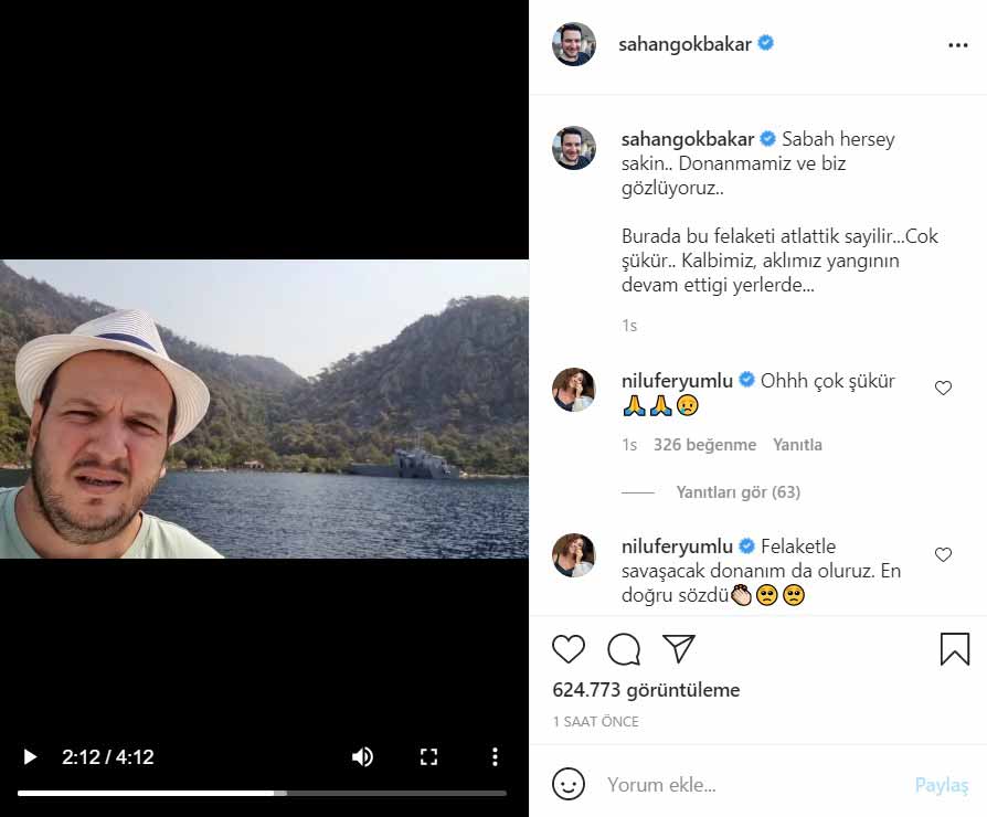Türkiye’de yurttaşlar, 28 Temmuz’dan bu yana farklı alanlarda peş peşe çıkan orman yangınlarıyla mücadele ediyor. Marmaris’te bulunan ve yangının başından beri bölgede canlı yayın yaparak yetkililerden yardım isteyen komedyen Şahan Gökbakar, son olarak orman yangınının Marmaris’teki evine ulaşmadan söndürülme işleminin başarıyla gerçekleştiğini açıkladı.