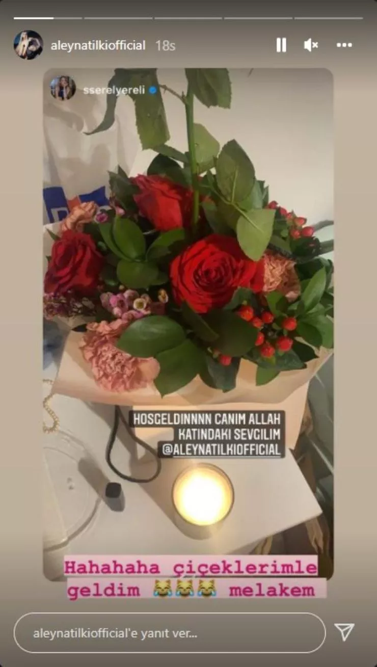 Şarkıcı Aleyna Tilki ise bu paylaşıma “Çiçeklerimle geldim Melakem” karşılığını verdi.