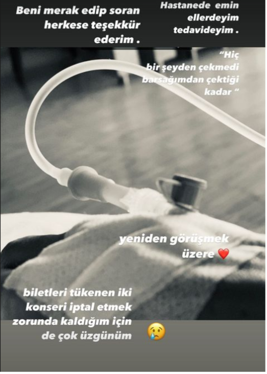 Bağırsaklarından problem yaşadığını belirten şarkıcı ayrıca, “Biletleri tükenen iki konseri iptal etmek zorunda kaldığım için çok üzgünüm” mesajını paylaştı.