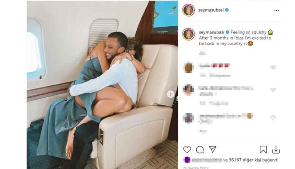 İlişkisine kaldığı yerden devam eden Şeyma Subaşı, 3.3 milyon takipçisinin bulunduğu Instagram hesabından çok konuşulacak bir paylaşım yaptı. Uçakta sevgilisinin kucağına oturarak poz veren Subaşı, paylaşımına “Çok yumuşacık hissediyorum. İbiza’da 3 ay geçirdikten sonra ülkeme geri döndüğüm için heyecanlıyım” notunu ekledi.