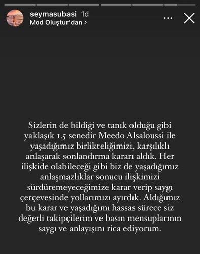 Dün ise Subaşı, ilişkilerinde aldıkları beklenmedik kararı sosyal medya üzerinden duyurdu.