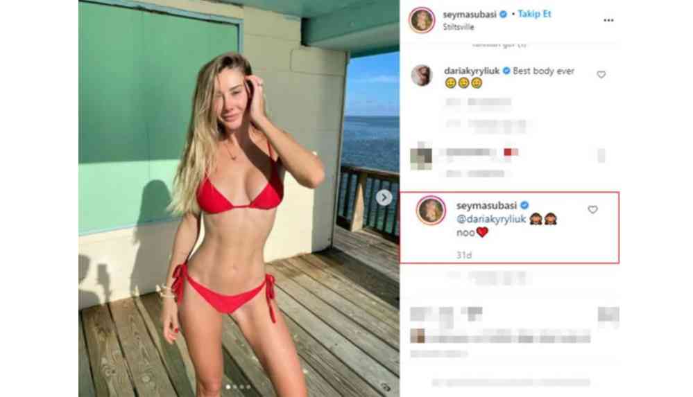 Şeyma Subaşı, aynı zamanda arkadaşı da olan Ukraynalı model Daria Kyryliuk’in “Şimdiye kadarki en iyi vücut” şeklindeki yorumuna ise “No” yanıtını verdi.