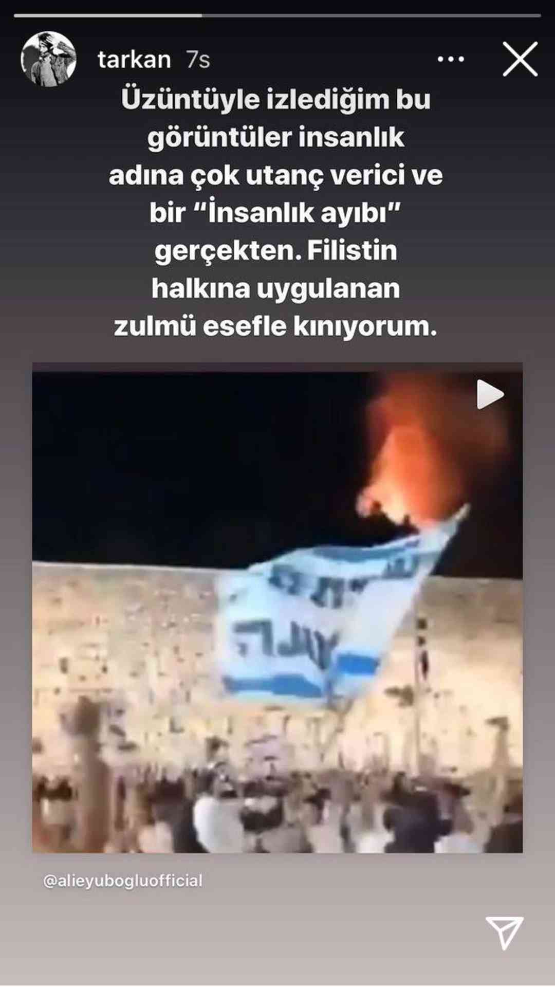 Tarkan, Instagram’dan yaptığı paylaşımda İsrail’in Filistin’e yönelik saldırılarını esefle kınadığını belirtti. Ünlü sanatçı, saldırılar için ‘insanlık ayıbı’ ifadesini kullandı.