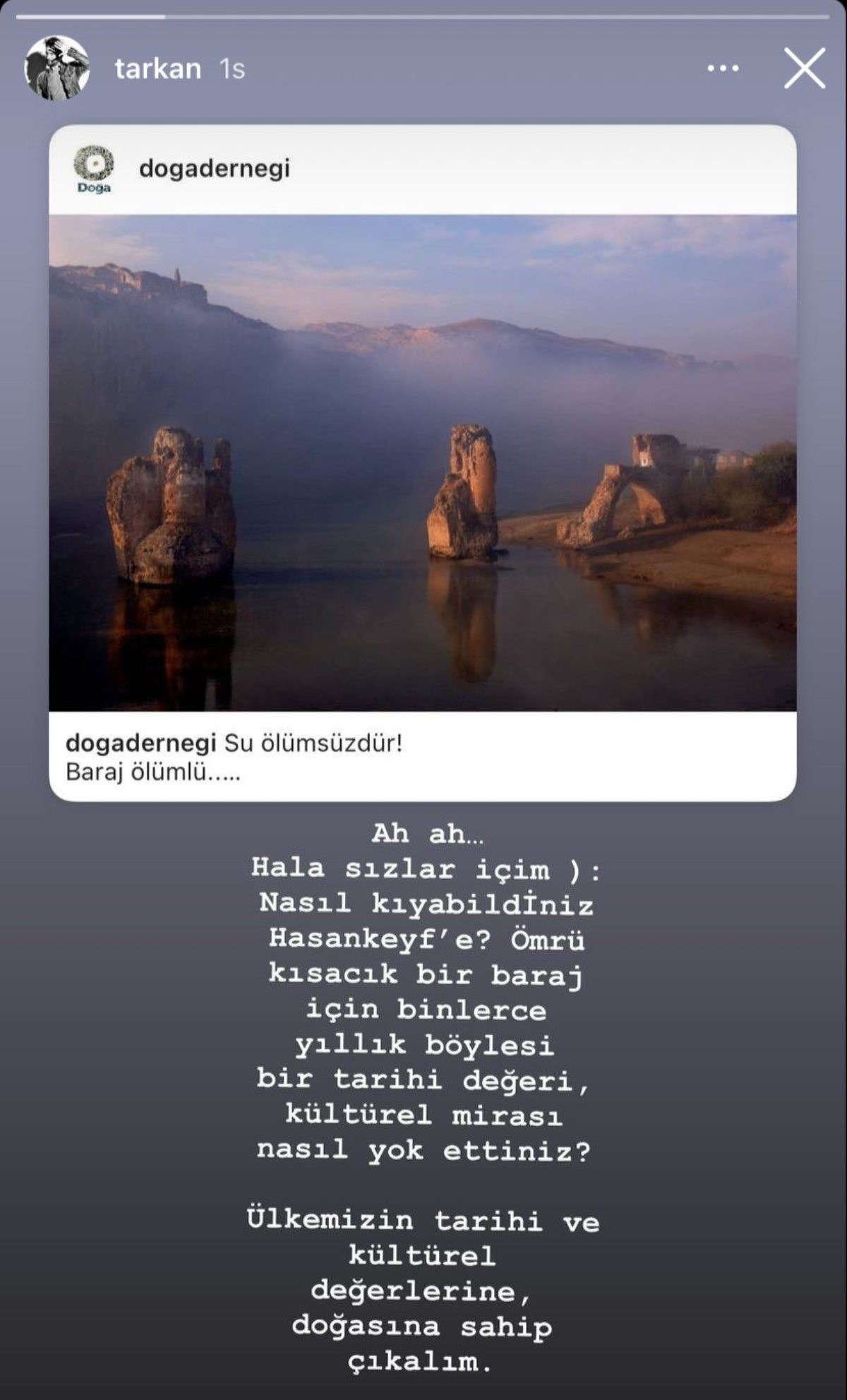 Hasankeyf’e yaşatılanlar gündemdeki yerini korurken; konuya ilişkin sanatçı Tarkan’dan bir paylaşım geldi.