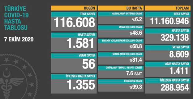 Son 24 saat içinde 56 kişinin hayatını kaybetmesiyle salgının başından beri toplam can kaybı 8 bin 609’a ulaştı.