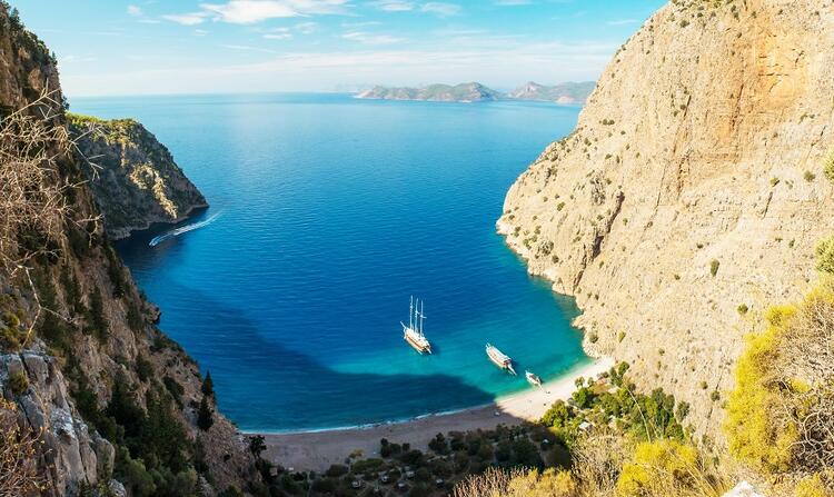 Vadinin en güzel manzarasını Likya Yolu rotası üzerindeki Faralya’dan görebilirsiniz. 350 metre yükseklikten sarp kayalarla çevrili vadi, kelebeklerin yaşadığı yeşilliğin ardından eşsiz bir denize açılıyor. Yeşilin ve turkuazın bütün tonlarına karıştığı bu cennet köşe, kendinizi kanatlarını açıp tatlı tatlı uçan bir kelebek gibi hissedeceğiniz muhteşem bir güzellik…