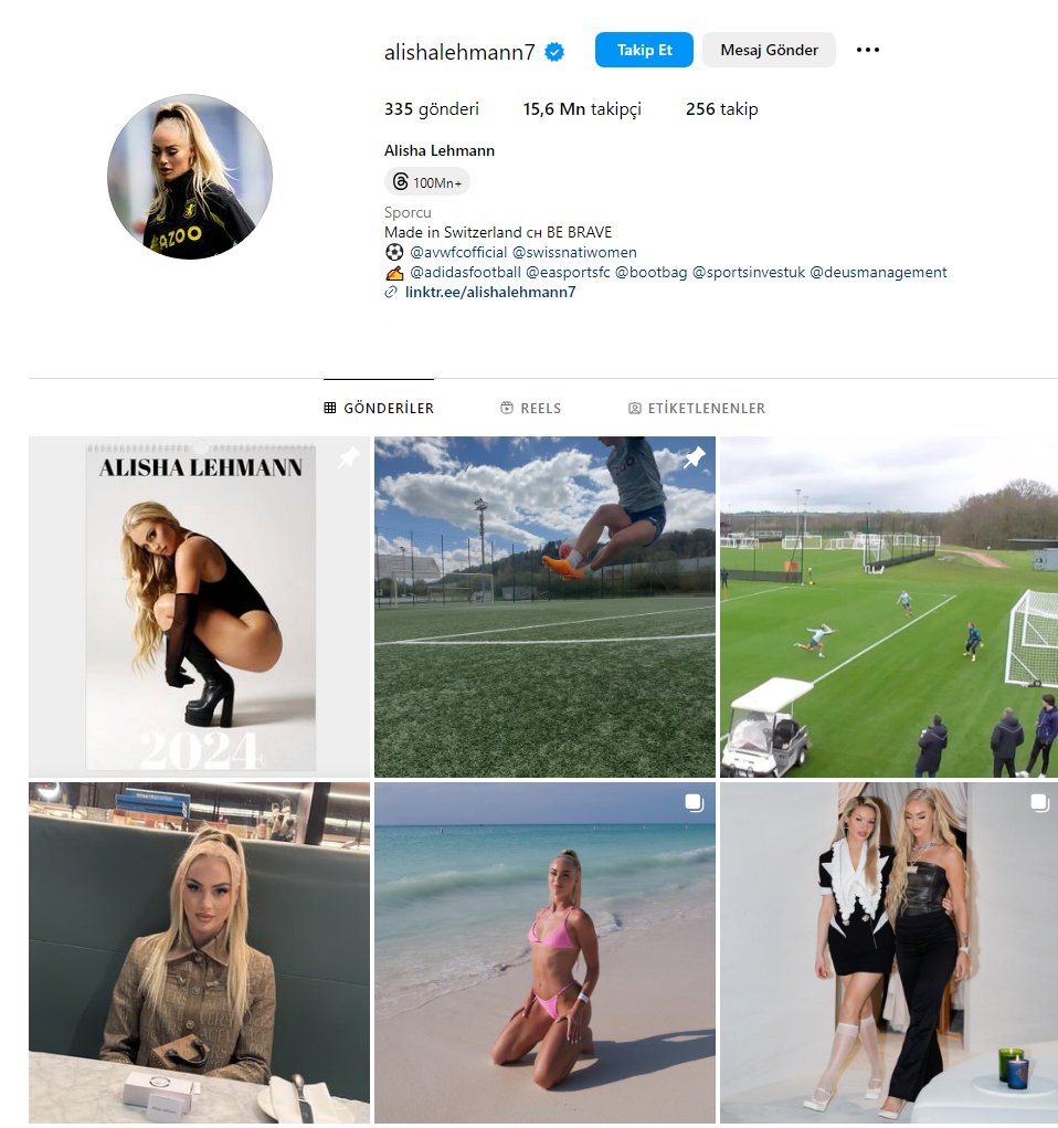 Uluslararası kadın futbolunun en tanınmış yüzlerinden biri olan forvet oyuncusunun Instagram’da 15,5 milyondan fazla takipçisi bulunuyor. Lehmann’ın sosyal medya platformunda bu yaz düzenlenen Kadınlar Dünya Kupası’nda yer alan en değerli kadın futbolcu olduğu düşünülüyor; paylaşım başına ortalama medya değeri 241,314 sterlin.