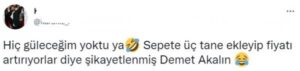 Demet Akalın’ın aldığı el ütüsünün fiyatı 300 lira olurken, ünlü şarkıcı sepetine 3 adet ütü eklediğini fark etmedi ve paylaşımını bu şekilde yaptı.