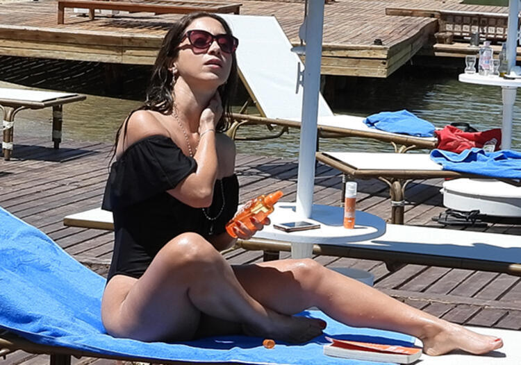 Siyah bir mayo giymeyi tercih eden şarkıcı, deniz keyfi sonrası leopar desenli pareosunu giyerek şezlonga geçti.